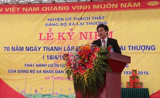Phát biểu tại buổi lễ, đồng chí Nguyễn Doãn Hoàn- TUV- Bí thư Huyện ủy- Chủ tịch HĐND huyện đã ghi nhận và biểu dương những thành tích mà Đảng bộ và nhân dân xã Lại Thượng đã đạt được trong thời gian qua. Tiếp tục phát huy những giá trị truyền thống trong thời gian tới, đồng chí mong muốn Đảng bộ và nhân dân xã Lại Thượng sẽ luôn tiếp tục đoàn kết, không ngừng đổi mới, năng động sáng tạo. Tập trung đẩy mạnh phát triển kinh tế- xã hội theo hướng bền vững, hiệu quả. Đồng thời thực hiện có hiệu quả nếp sống văn minh trong việc cưới, việc tang, lễ hội và mừng thọ. Thực hiện tốt năm kỷ cương hành chính 2017, đẩy mạnh cải cách hành chính và nâng cao hiệu quả quản lý của bộ máy chính quyền, phấn đấu đạt xã nông thôn mới trong năm 2017.