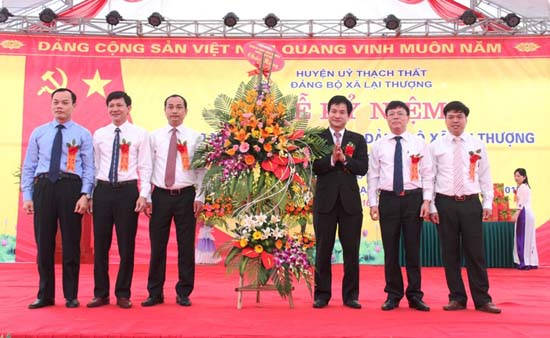 Tại buổi lễ, Huyện ủy Thạch Thất đã trao tặng Đảng bộ và nhân dân xã Lại Thượng bức trướng với dòng chữ “Đoàn kết - Dân chủ - Kỷ cương - Đổi mới xây dựng Đảng bộ ngày càng vững mạnh”.