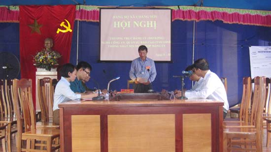 Xã Chàng Sơn diễn tập vận hành cơ chế giai đoạn 1: chuyển trạng thái sẵn sàng chiến đấu của lực lượng vũ trang từ thường xuyên lên cao, chuyển địa phương vào tình trạng khẩn cấp về an ninh quốc gia, với 5 hội nghị bao gồm: hội nghị Thường trực Đảng ủy mở rộng nghe quân sự, công an báo cáo tình hình thống nhất nội dung họp Đảng ủy; Hội nghị Đảng ủy mở rộng ra nghị quyết lãnh đạo chuyển các hoạt động của địa phương vào tình trạng khẩn cấp, lực lượng vũ trang chuyển trạng thái sẵn sàng chiến đấu lên cao, xử lý gây rối bạo loạn; Hội đồng nghĩa vụ quân sự xã triển khai nhiệm vụ; Khối Đảng thông qua kế hoạch của các ban ngành đoàn thể xã; Đảng ủy xã ra nghị quyết lãnh đạo nghe công an thông qua phương án đánh chiếm lại mục tiêu, quân sự báo cáo kế hoạch phối hợp.